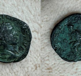 ローマ帝国期、3世紀頃に発行された銅貨(セステルティウス貨)の特徴を有したコインです。 表面には時の皇帝の胸像、裏面には槍や投槍を握った雷神ユピテルや、軍神ウィルトゥスといった、ローマ神話に登場...