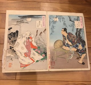 月岡芳年(1839-92)による浮世絵「月百姿 左側: 花山寺の月(かざんじのつき)/右側: 南屏山昇月 曹操(なんぼうさんしょうげつ そうそう)」です。 「月百姿(つきのひ...