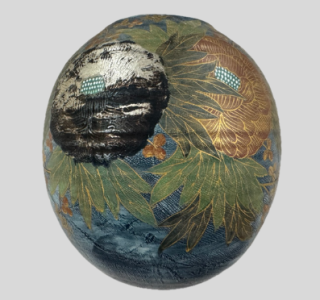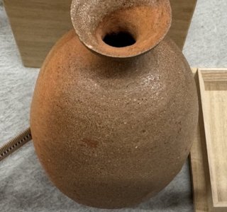 京焼の藤平正文による金彩花文花瓶をお譲りいただきました。 この花瓶は、大胆な金彩と、生命力あふれる花文が実に見事に調和した逸品です。重厚感のある地色に、金彩の縁取りが煌びやかに浮き上がるデザイン...