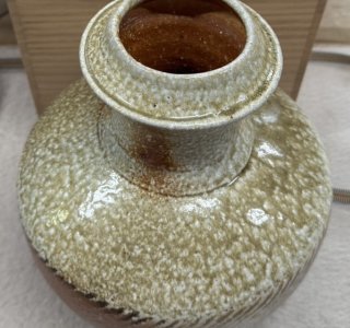 沖縄を代表する人間国宝の陶芸家・金城次郎による「海老魚紋つる首壷」をお譲りいただきました。