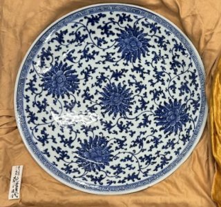 鮮やかな藍色が大変美しい、「清朝乾隆時代 青花纏枝蓮文大皿」 をお譲りいただきました。精緻な絵付けが見事な、景徳鎮窯の名品と見受けられます。 景徳鎮窯は、中国江西省・景徳鎮を中心に発展した中国を...