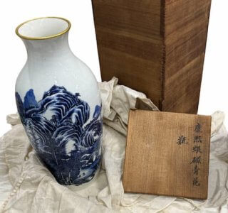 器面全体を覆う山水文の大胆な構図が印象的な「康熙煨磁青花瓶」をお譲りいただきました。 柔らかな白磁の肌に、落ち着いた色合いの青花が映え、静かな気品が漂う作品です。 本作は、滑らかで艶のある地肌...