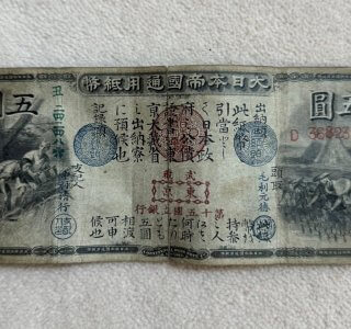 「旧国立銀行券5円札」をお譲りいただきました。 旧国立銀行券は、明治維新後の1873年(明治6年)から1899年(明治32年)にかけて国立銀行により発行された紙幣です。 ...