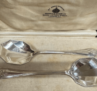 エレガントなケースに収められたアレックス・クラーク社(The Alexander Clark & Company)製のスターリングシルバーのカトラリーセットをお譲りいただきました。 アレック...