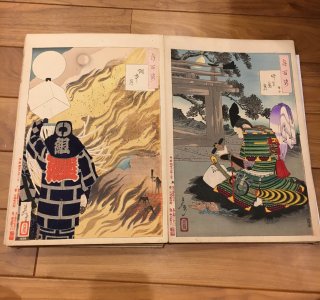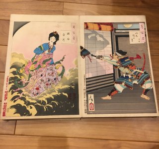 月岡芳年(1839-92)による浮世絵「月百姿 左側: 嫦娥奔月(じょうがほんげつ)/右側: 山木館の月 景廉(やまきかんのつき かげかど)」です。 「月百姿(つきのひゃくし...