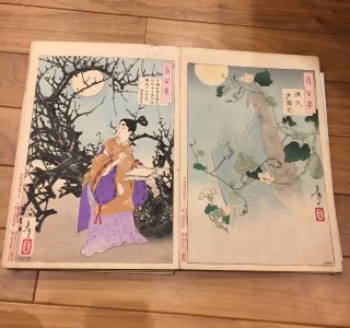 月岡芳年(1839-92)による浮世絵「月百姿 左側: 雨後の山月 時致/右側: 破窓月」です。 「月百姿(つきのひゃくし)」は月をテーマとした全100点揃の大判錦絵で、のべ...