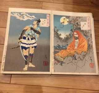 月岡芳年(1839-92)による浮世絵「月百姿 左側: 烟中月(えんちゅうのつき)/右側: 竹生島月 経正(ちくぶじまのつき つねまさ)」です。 「月百姿(つきのひゃくし)」...