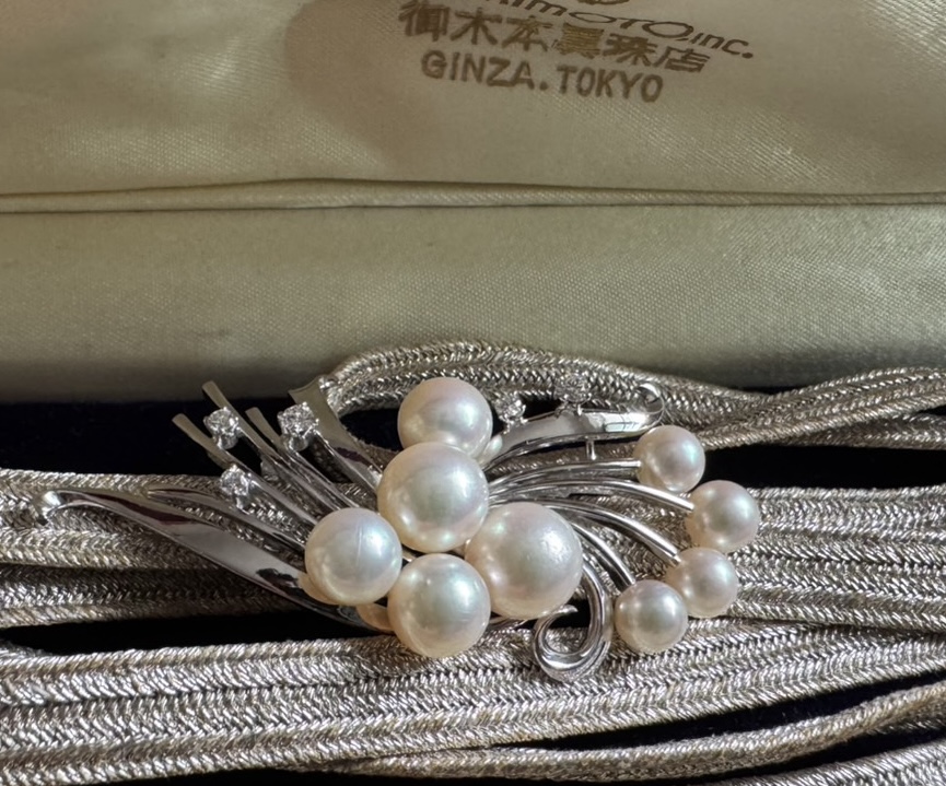 格式高い「御木本真珠店 GINZA, TOKYO」の銘が刻まれた、大変美しい真珠の帯留をお譲りいただきました。