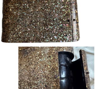 この度、全面に細かな螺鈿(らでん)装飾が施された美しい小物入れをお譲りいただきました。 この小物入れは、虹色の輝きを放つアワビ貝などの真珠層を細かく切り出し、漆地に敷き詰めた螺鈿の技法が用いられ...