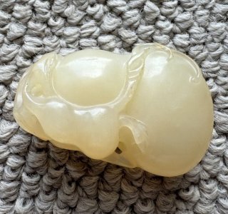 白玉(はくぎょく)の根付をお譲りいただきました。 中国で古来より愛されてきた玉の一種である白玉。玉石文化において最も尊ばれてきたものです。伝統的な縁起物で、古くから贈り物や装...