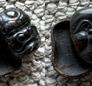複数の面を組み合わせた寄面根付(よせめんねつけ)をお譲りいただきました。 寄面根付は能や狂言など様々な面を寄せ集め、一つの作品として構成されたものです。表情の異なる複数の面を...