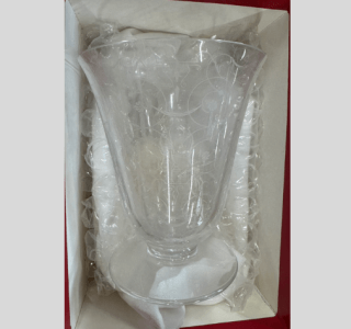 透明なガラスに白い気泡を造ることで、まるで雪景色を閉じ込めたかのような幻想的な美しさを放ちます。口縁は花びらが開いたような柔らかなカーブを描いており、その造形からも藤七ならではの芸術性が感じられます。