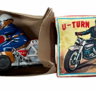 こちらは、タカトク製「U-TURN MOTOR CYCLE」です。 こちらの商品は、箱のパッケージから外国の製品のように見えますが箱に「MADE IN JAPAN」の表記がある通り日本の製品です...