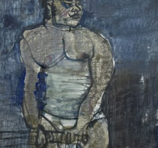 1928年京都に生まれた今井俊満は、1950年代にはフランスへ渡り、前衛芸術運動に参加します。当時のパリはアンフォルメルと呼ばれる前衛芸術運動の中心地で、この潮流のなかで自らの表現を確立します。荒々しい筆致、厚く絵の具を塗り重ねたダイナミックな表現は、今でも前衛美術ファンをはじめ、多くのコレクターを魅了しています。