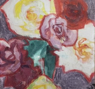 今井の作品は、時代とともに大きく変化を遂げており、初期のアンフォルメル的な抽象画から、金銀を華やかに用いた装飾性の高い抽象表現へと移行します。とくに1980年代以降の花鳥風月シリーズと呼ばれる日本での作品群は、西洋の技法と日本の伝統美の融合と言える独自の作風を実現し、現在のアート市場でも人気があります。