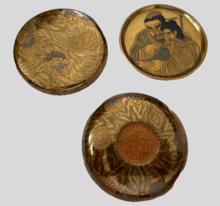このセットに見られる、金工の緻密な技術と、蓋に描かれた漆芸の奥行きある景色は、いずれも高い格式を感じさせます。漆芸と金工、異なる工芸の匠の技が一体となり、茶席に彩りと物語をもたらすお品です。