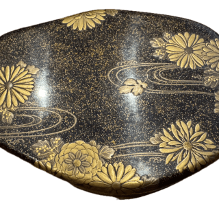 黒漆の地に金蒔絵が鮮やかに映える、優美な鶴図の蒔絵香合をお譲りいただきました。手に取るたび、丁寧な仕事ぶりに息をのむ逸品です。
