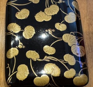 美しい蒔絵香合をお譲りいただきました。手のひらに収まるほどの小さな香合は、お茶席で香木や練り香を入れるための雅な道具であり、日本の漆芸の粋が凝縮された逸品です。 今回のお品は、艶やかな黒漆の地に...
