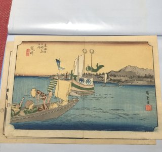 初代 歌川広重による浮世絵「東海道五十三次の内 荒井 渡舟ノ図(あらい・とせんのず)」です。 東海道五十三次(とうかいどうごじゅうさんつぎ)は、江戸時代に徳川家康が整備した江戸・日本橋と京都・三...