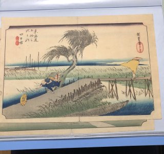 初代 歌川広重による浮世絵「東海道五拾三次之内 四日市 三重川(現在の三滝川)」です。 東海道五十三次(とうかいどうごじゅうさんつぎ)は、江戸時代に徳川家康が整備した江戸・日...