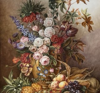 KPMベルリンによる陶板画です。果実や花々をモチーフに、磁器板に精緻な絵付けを施した作品で、油彩画に匹敵する豊かな色彩と質感を備えています。 KPM(王立磁器製陶所ベルリン)は1763年、プロイ...