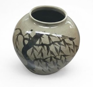 十三代中里太郎右衛門による「白鷺文 壺」をお譲りいただきました。 本作は、唐津焼の伝統を受け継ぐ中里家の技と美意識が凝縮された一作で、柔らかな乳白色の釉調の上に、白鷺と竹を思わせる流麗な筆致が描...