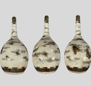 独特なシルエットが目を引く「青磁水注(ケンディ)」をお譲りいただきました。 本品は、細く立ち上がった頸部と、肩の部分に備わった丸みを帯びた注ぎ口が特徴的です。全体を包む青磁釉は、柔らかな光沢を湛...