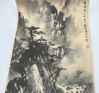 松の茂る峻険な山々と渓谷を流れる清流を描いた、方継良筆「松壑渓流図」をお譲りいただきました。 墨の濃淡を巧みに生かした力強い筆致によって幽玄な世界が表現された、見応えのある作品です。 本作の款...