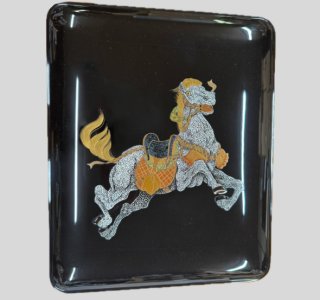 深みのある漆黒の地を背景に、貝の光沢が幻想的な美しさを放つ螺鈿(らでん)細工の印籠をお譲りいただきました。 この作品は、薄く削り出した貝を精緻に嵌め込む技法が用いられており、水辺の楼閣や橋、たな...