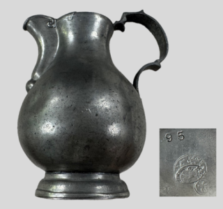 どこか懐かしくも鮮やかな色彩が目を引く「菓子入玩具壜」をお譲りいただきました。 このお品物は、型吹きガラスの胴体に精巧なブリキ製の頭部が組み合わされた、職人の遊び心が詰まった逸品です。お菓子を食...