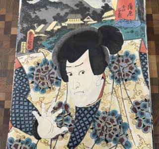 三代 歌川豊国(歌川国貞)による浮世絵「東海道五拾三次之内 土山 阿漕平次(つちやま あこぎへいじ)」です。 「役者見立東海道」と呼ばれるシリーズ作品の一つで、手前に役者絵、...