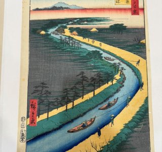 初代 歌川広重による浮世絵「名所江戸百景 四ツ木通用水引ふね(よつぎどおり ようすいひきふね)」です。 「名所江戸百景」は、歌川広重の人生の集大成ともいえる作品で、118図と...