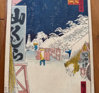 初代 歌川広重による浮世絵「名所江戸百景 びくにはし雪中」です。 「名所江戸百景」は、歌川広重の人生の集大成ともいえる作品で、118図と弟子による作品も含めた全120図で構成...