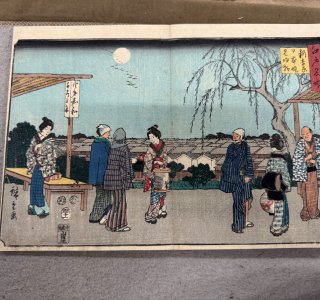 初代 歌川広重による浮世絵「江戸名所 新吉原日本堤見返柳(しんよしわら にほんづつみ みかえりやなぎ)」です。 歌川広重(1797-1858)は江戸時代の浮世絵師です。「東...
