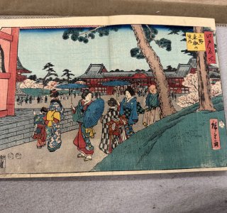 初代 歌川広重による浮世絵「江戸名所 上野東叡山境内(うえの とうえいざん けいだい)」です。 歌川広重(1797-1858)は江戸時代の浮世絵師です。「東都名所」のシリー...