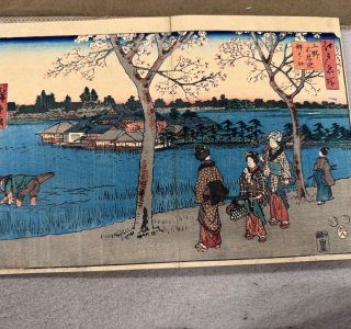 初代 歌川広重による浮世絵「富士三十六景 左側の作品:武蔵多満川(むさしたまがわ)と右側の作品:武蔵小金井(むさしこがねい)」です。 富士三十六景は広重がその画業の晩年に手掛...