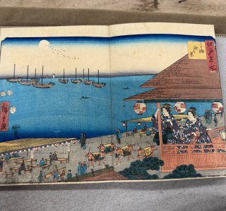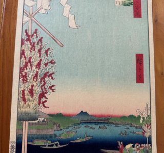 初代 歌川広重による浮世絵「名所江戸百景 浅草川 大川端宮戸川(あさくさがわ おおかわばた みやとがわ)」です。 「名所江戸百景」は、歌川広重の人生の集大成ともいえる作品で、...