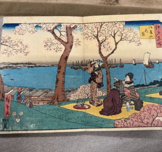初代 歌川広重による浮世絵「江戸名所 御殿山 花盛(ごてんやま はなざかり)」です。 歌川広重(1797-1858)は江戸時代の浮世絵師です。「東都名所」のシリーズを皮切りに...