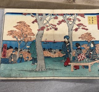 初代 歌川広重による浮世絵「江戸名所 品川 海晏寺紅葉見(しながわ かいあんじ もみじみ)」です。 歌川広重(1797-1858)は江戸時代の浮世絵師です。「東都名所」のシリ...