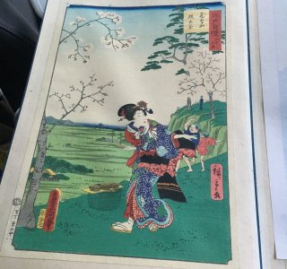 歌川国貞(三代 歌川豊国)と二代 歌川広重による浮世絵「江戸自慢三十六興 道灌やま虫聞(どうかんやまむしきき)」です。 「江戸自慢三十六興(えどじまんさんじゅうろっきょう)」...