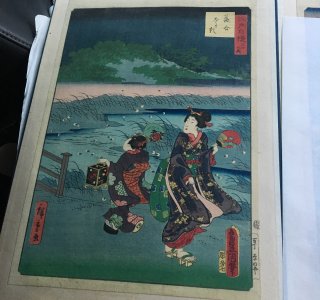歌川国貞(三代 歌川豊国)と二代 歌川広重による浮世絵「江戸自慢三十六興 落合ほたる(おちあいほたる)」です。 「江戸自慢三十六興(えどじまんさんじゅうろっきょう)」は、元...