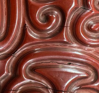 漆の層が厚ければ厚いほど、長い時間と技術をかけて作られた堆朱の証となるので、高額査定が期待できます。 層が厚いと自然と彫りも深くなり、写真のように光を当てると、くっきりと濃い影が見えます。 ただし年代により彫りの特徴も異なるので、シンプルなお品でも高額査定となる場合もあります。 -